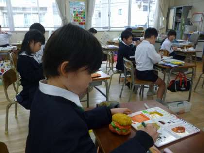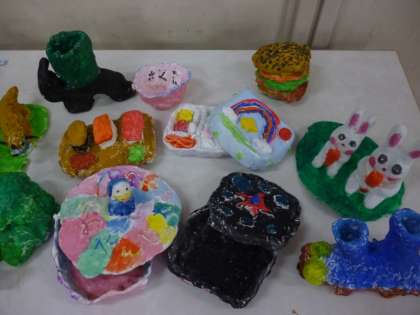 お弁当やハンバーグ、小物入れ、置物などそれぞれ自分の好みのものを作りました。集中して細かいところも丁寧に塗り素敵な作品が仕上がりました。