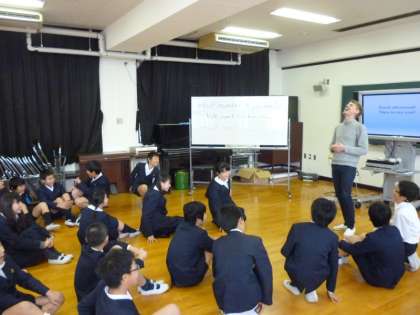前もって子どもたちがRyan先生に感謝の気持ちを英語で色紙に書きました。先生には内緒で授業の最後にsurprise。みんなの思いを受け取りRyan先生はとても嬉しそうでした。子どもたちも英語に慣れ親しみ楽しくlessonができました。