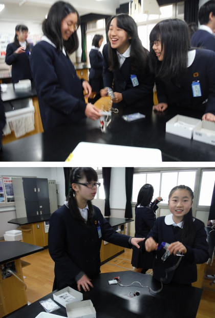 など,それぞれ手回し発電機の特徴を発見しながら楽しく実験を進めることができました。
