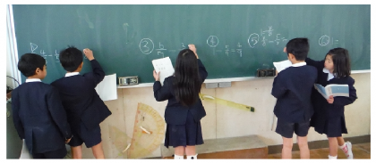 黒板で算数の問題を解くのが大好きです。問題の数は少ない。誰にあたるのか…「あててほしい光線」が教室中を飛び交います。