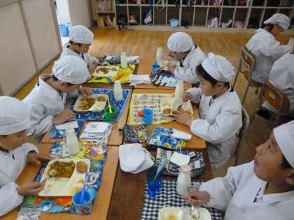 新しいクラスになり初めての給食。ラッキー人参に盛り上がり