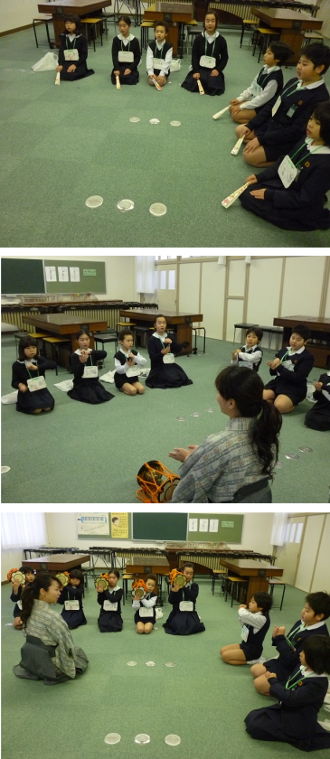 続いて,小鼓の練習です。「ミツヂ」の確認から・・・