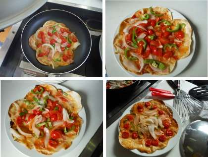 餃子の皮を使ったピザは,昨日の給食で出たばかりなのがちょっと残念だったが,フライパン一面に皮を敷き詰めることでぐっと存在感を増した。
