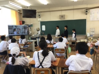 今日は6月下旬に行われる部活動体験の説明に豊崎中学校の生徒会の皆さんが来てくれました。