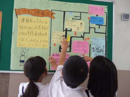 「5月は運動会だからけがの手当!」「迷路にしたら?」と,話し合いの時も作成中もみんなで協力して楽しそうでした。