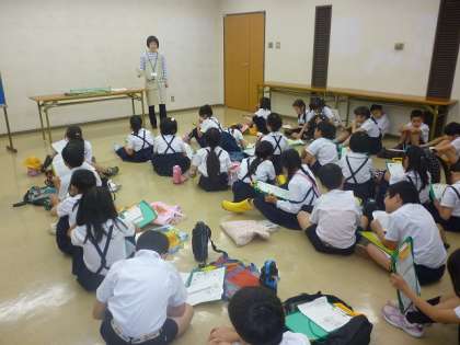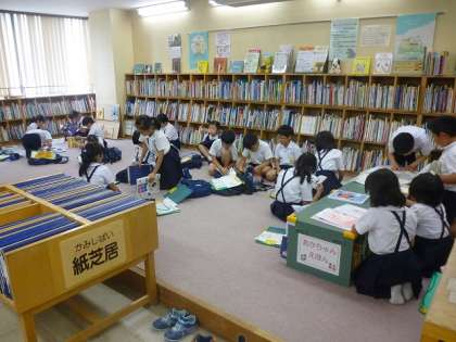 館員の方の説明を熱心に聞き取り、あらかじめ考えてきた質問をとても上手にできました。内容もよく考えられたもので、国語科の「図書館の見学」の学習が活かされていました。団体貸出しカードを使って、全員1冊ずつ本を選びました。来週には学校にそれぞれの借りた本が届きます。それも、とても楽しみにしている様子でした。返却も学校で一括して行います。コミュニティセンターでは、バレエやダンスのできる多機能な会議室を見せてもらい、驚いていました。