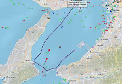 帆船『みらいへ』は関空島の南でアンカリングでしょうか。