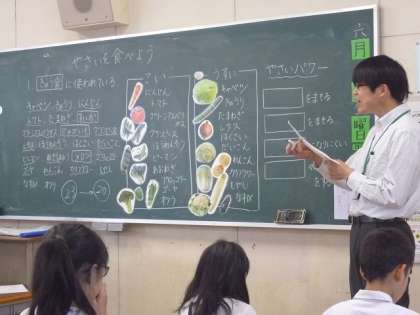 3時間目に、栄養教育推進授業として、「やさいを食べよう」の学習をしました。給食で使われている野菜をみんなで考え、それらをグループ分けしたのち、それぞれが体にどのような働きをしているのかを学習しました。2年生までの学習もよく覚えていて、真剣に取り組んでいました。3年生は、このところ、残菜も少なく、よく頑張って食べています。多人数の準備や後片付けも手早くできるようになってきました。