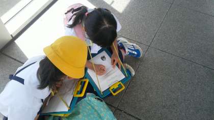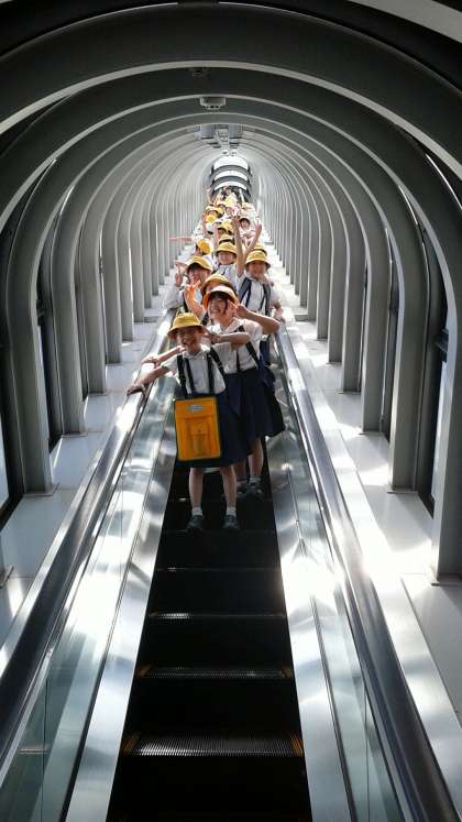 学校から歩いて30分。あんまち隊の方に付き添っていただいて、スカイビル空中庭園に出かけました。社会科で大阪市の学習に入ったところです。視界360°オープンエアの回廊<スカイウォーク>は天気にも恵まれ最高の眺望でした。北に千里丘陵、大阪国際空港、東に大阪城、上町台地、南にあべのハルカスや、ビジネスビルの数々、西に新淀川と大阪湾、そして遠くに見える六甲山麓と、大阪の中心部と、周辺の様子をつぶさに見てきました。新御堂筋の向こう側に小さく見える豊崎小学校では、屋上プールで、松島先生が大きな旗を振ってくださいました。小さく見える学校の屋上で振られる旗に歓喜の声が上がりました。今日は、児童は、社会見学の1枚日記に取り組んでくれていることでしょう。