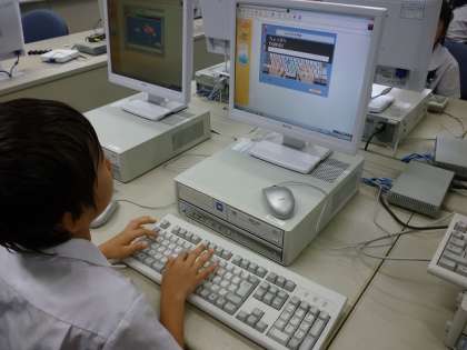 先日、国語の調べ学習でパソコン室に行った時に困ったことがありました。調べたいことがあってもどのキーを押せば良いかが分からず、調べたい事柄にたどり着くまでに子どもたちは四苦八苦・・。そこで今週からキーボードレッスンに取り組んでいます。3年生で学習したローマ字を思い出すことと、キーの場所を覚えるということを目標に楽しみながら学習しています。一度身につければ今後とても役に立つ技術なので引き続き練習をしていきたいと思います。