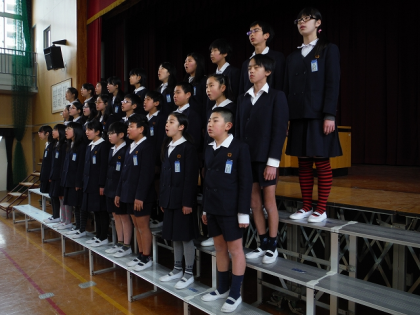 卒業式で歌う歌の練習もしました。清々しい歌声が講堂に響いていました。