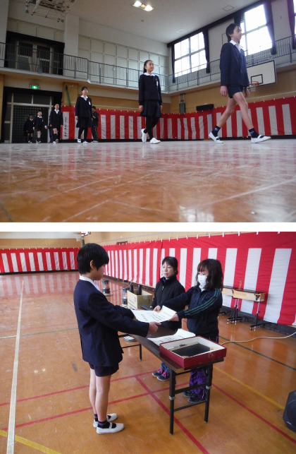 また,豊崎小学校の卒業式では,卒業証書を受け取る前に1人ずつ自分の将来の夢についての決意を発表します。自分の将来の夢についての思いを会場のみなさんにきちんと伝わるように練習を重ねていく必要がありますね。