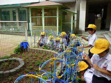 輝く笑顔でお話してくれます。今日は全員でなかったのが少し残念ですが、つるもどんどんのびて、つぼみがたくさんついているあさがおもあります。