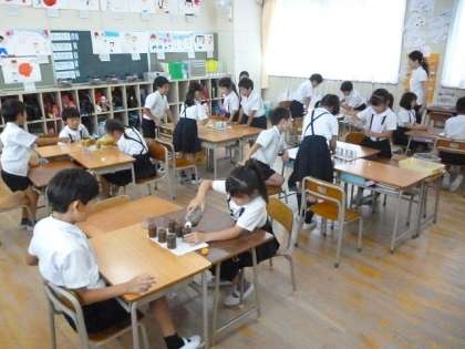 子どもたちは枡を使い水のかさをきちんと調べることができていました。