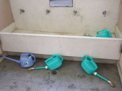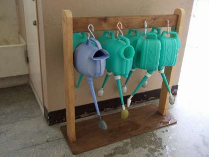 管理作業員さんが,あっという間にこんなにすてきなじょうろ立てを作ってくださいました!