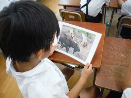 「ムース(ヘラジカ)は大きいんだよ。一頭で,一家族が一年暮らせるよ。」