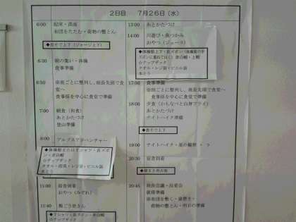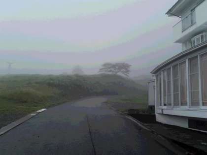 おはようございます。午前6時現在雨は降っていません。写真のように霧です。雲の中にいる状態です。昨日の雨を鑑みて、今日予定していた登山を明日にして、明日予定していたアルプスアドベンチャーを今日行います。昨日できなかった魚つかみを午後に行います。