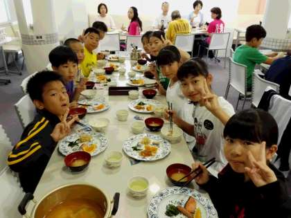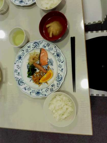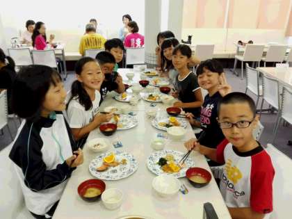 朝食。今朝の活動がアルプスアドベンチャーになったことで子どもたちのテンションが急上昇です。