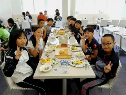 朝食。この学年の子どもたちのいいところの1つに食事を残さないことです。食べる早さには個人差がありますが。