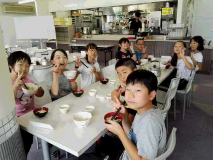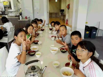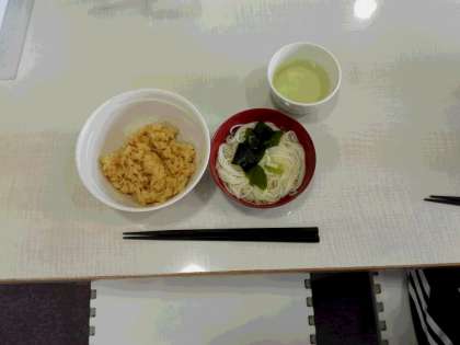 昼食。ヴィギンレイでの最後の食事です。五目ご飯とにゅうめんです。おかわりが多いです。帰りのバス酔いは大丈夫かな。