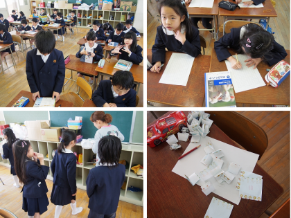 手伝いを頼むと気持ちよく引き受けてくれます。昨年度この教室を使っていた先生の荷物移動を手伝ってくれました。後ろの方では席替えの「くじ」をせっせと作っている子もいます。いつもの様子がさっそく展開されていますね。