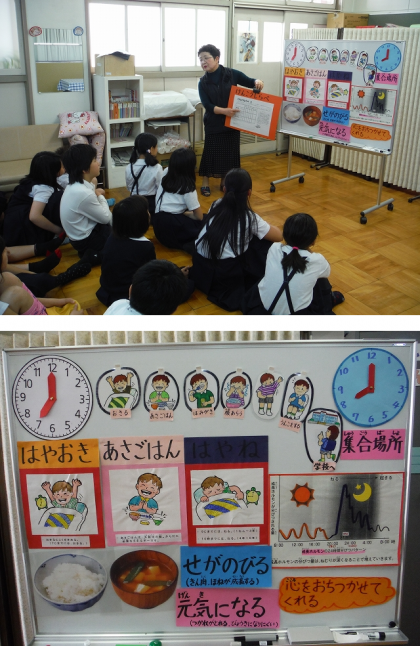 保健室でまず,朝起きてからどんなことをしているかを確認しました。