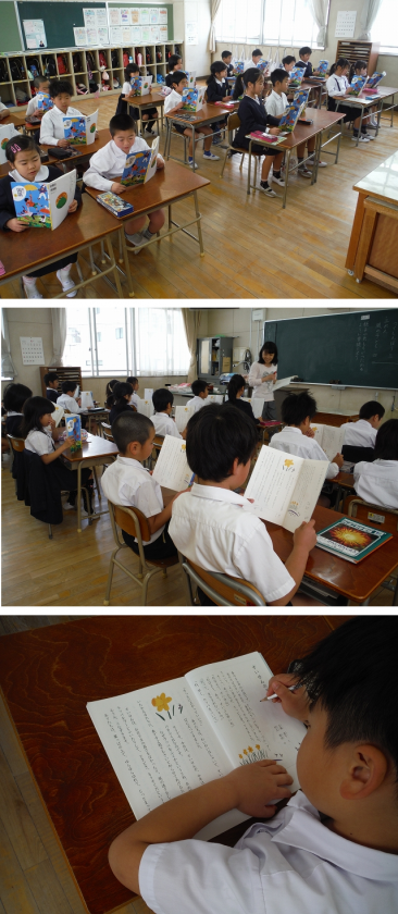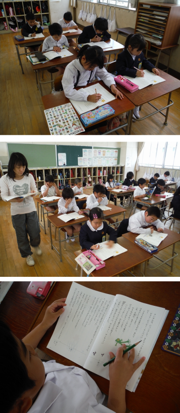 国語で,「すいせんのラッパ」の学習をしました。まだ習っていない漢字もあるので,担任の先生が範読しているのを聞いて,読めない漢字にはるびをうちました。