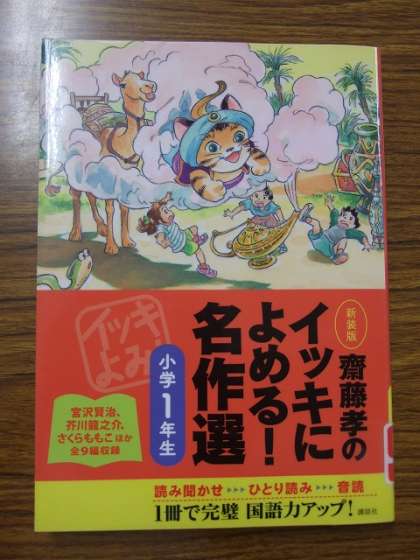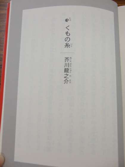これまでのお話は短めの絵本が多かったのですが,今日の「お昼の本読み」は,芥川龍之介の「蜘蛛の糸」でした。「蜘蛛の糸」は有名な文学作品。低学年の子どもたちには言葉も内容も少し難しかったようです。でも実は,学校図書館補助員さんが「イッキによめる!名作選・小学1年生」の中から選んでくださったお話だったのです。たまには背伸びしてレベルの高いお話に挑戦してみるのもいいですね。