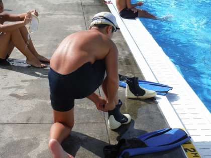 今日は修学旅行で行うシュノーケリングの練習を行いました。
