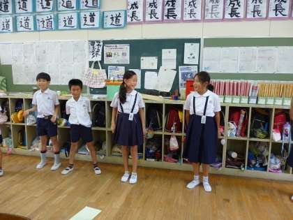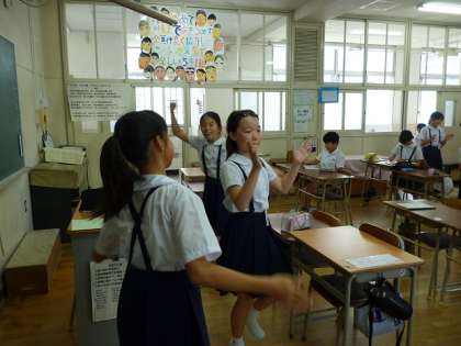 体育の学習で「リズムダンス」をしています。基本の動きをみんなで練習した後、グループに分かれて、音楽に合わせたダンスの振付の構成を考えています。曲名は「BRAVE」(作詞・作曲 ナオト・インティライミ)。音楽に合わせて体を動かす楽しさに目覚めた子どもたちは、「体育の時間だけでは足りません!」と、休み時間も音楽を流して、自主練習に励んでいます。