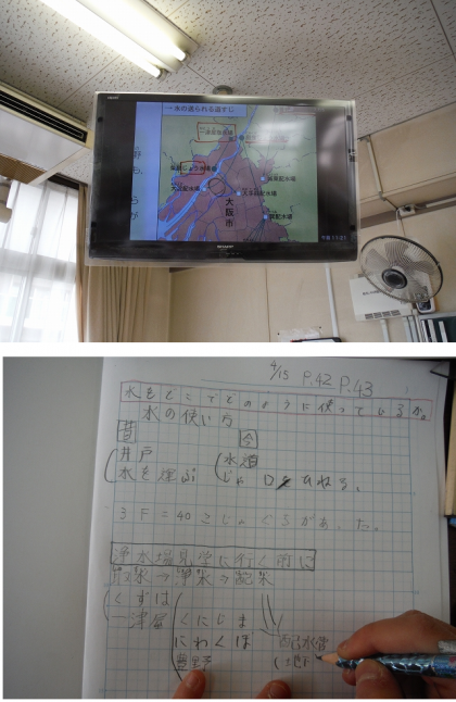 3年生の社会科で,校区の北を流れている川が淀川であることの確認をしました。みんなの飲んでいる水はこの淀川の水です。では,その淀川の水がなぜ蛇口からひねると出てくるのか…そのままでは飲めないことはみんなわかっています。