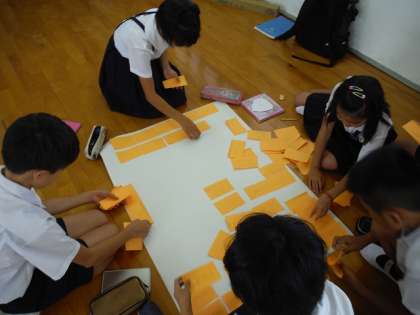 水から連想できるものを書き出しそれぞれの班でまとめました。