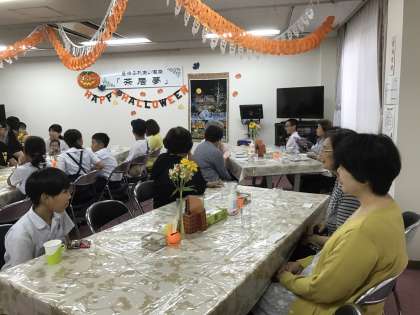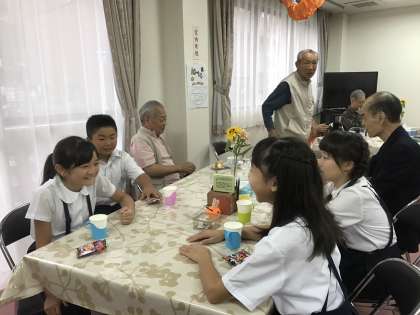 しりとりをしたり、用意してきたなぞなぞやクイズをしたりした後は、飲み物とお菓子をいただきながら、地域の方々といろいろなお話をしました。