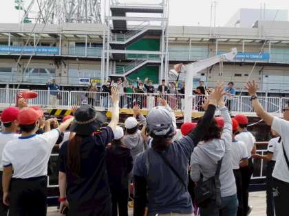 出港。見送りに来ていただいた保護者の方々とお別れをして、大阪港の外に出ました。