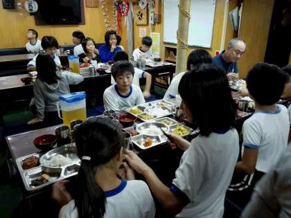 夕食。メスルームの様子です。クルーの方々と一緒にいただきます。