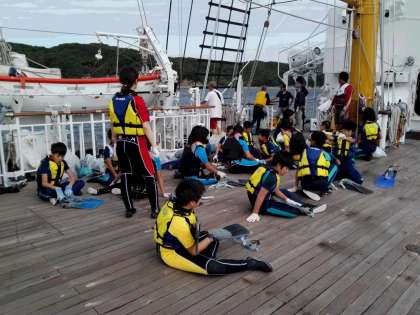友ヶ島の南側に回り、「みらいへ」を風上においてボートに乗り込みます。いよいよです。