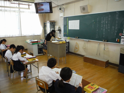 教材提示装置で辞書を拡大して表示することで,自分が手にしている辞書と見比べながら調べたい言葉がどこにあるか探すことができました。