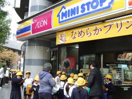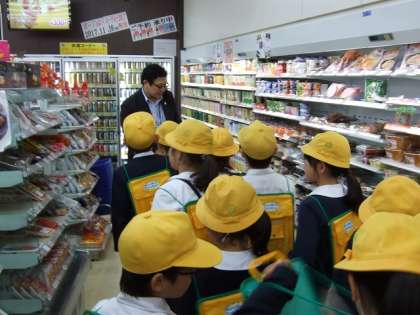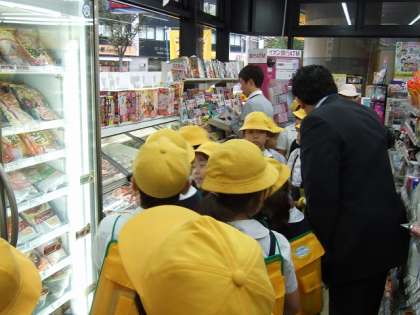 霧雨の中コンビニエンスストアの見学に行きました。2グループに分かれての時間差出発です。前回のスーパーマーケットに続いての雨模様。それでも元気に出かけて、しっかり見学し、質問してきました。スーパーマーケットとの違い、どんな工夫があるのか、など様々な学びがありました。帰校してからも、見てきたこと、わかったことを発表しあい、交流しました。スーパーに比べあんなに小さいのに、お客さんが半数近くいるのにおどろき、そのわけを考えたり、品数は少ないけれど、様々な用途の商品が、3000品種も揃えられていることへの驚きも出てきていました。