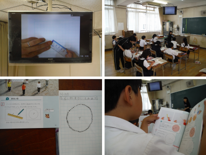 もとになる点から等間隔になる場所に点をうっていくと,丸い形が現れました。これが円ということや,もとになる点のことを中心ということを学習しました。