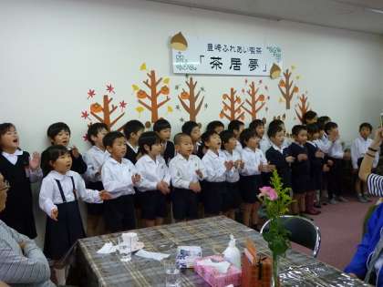 次に、「おちゃらかほい」を披露して、地域の皆さんとも一緒に歌ったり手遊びしたりしました。