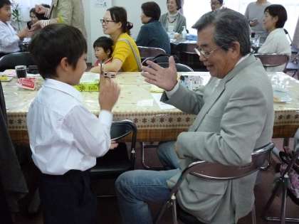 子どもたちが着くと豊崎会館は地域のみなさんですでにいっぱい。