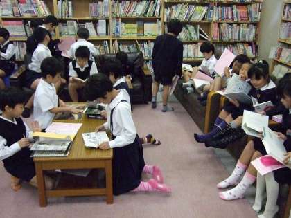 今日は雨で運動場が使えないこともあって,図書室は大盛況!