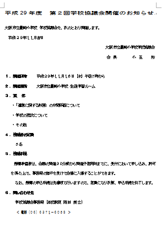 次のように、平成29年度 第2回学校協議会を開催いたします。