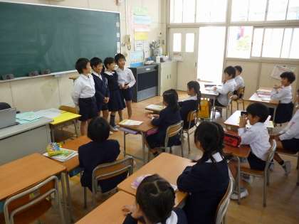 朝の会でどんな遊びをするのかをくじで決め、みんなにルール説明をします。