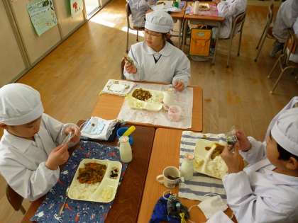 給食時間、習ったことが子どもの頭にはしっかり残っているのがわかりました。
