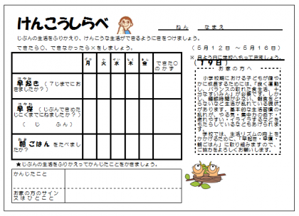 5月9日 「けんこうしらべ」のお願い 【保健室】