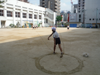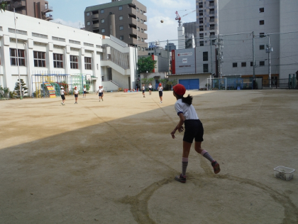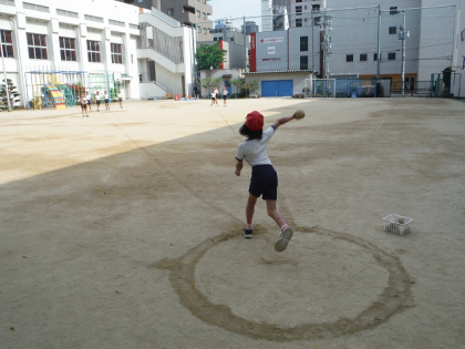 6年生も,ソフトボール投げの練習を行いました。豊崎本庄小学校のグランドを借りて計測する際に,よい記録がでるといいですね。