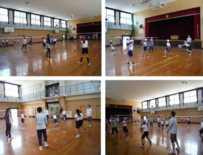 まずは準備体操。そして輪になってバレーボールの練習。「はい」「○○さん」と声をかけながら,和気あいあいと練習しました。