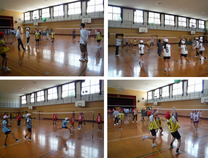 下から打つサーブが難しく困っている子もいましたが,「おしい」という声に励まされながら頑張りました。鋭いサーブに「オー」「すごい」と驚いたり,点が入って共に喜んだりと楽しい時間を過ごすことができました。