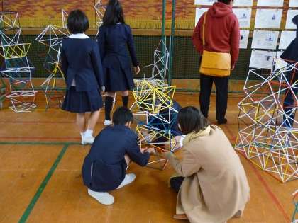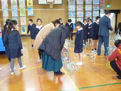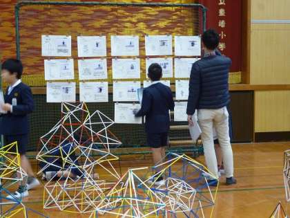 土曜日に引き続き、昭和設計の方々が5・6年生の作品「みんな小さな建築家」を見に来てくださいました。